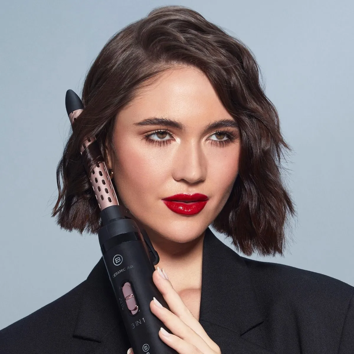 Descubra la comodidad de hacerlo todo con una sola herramienta. Elija Bellissima Ceramic Air: el nuevo cepillo moldeador de aire caliente con 3 accesorios y revestimiento cerámico, especialmente diseñado para secar y moldear suavemente el cabello corto, semicorto, con flequillo y con mechones.